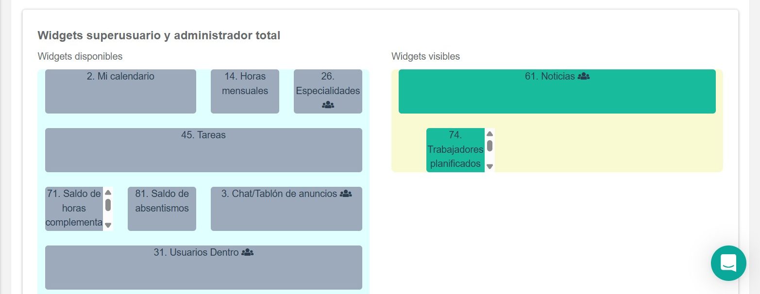 🔐 En su caso, los superusuarios o administradores totales son quienes configuran los widgets que se mostrarán según el rol del usuario.