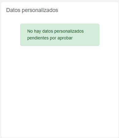 Identificado como “Datos Personalizados”, en la configuración de la pantalla de inicio. Muestra los datos personalizados del usuario logueado (ver más sobre datos personalizados). Visible para: Superusuario y Administrador Total.