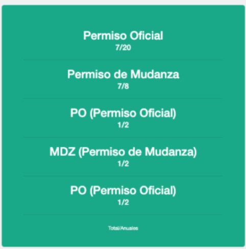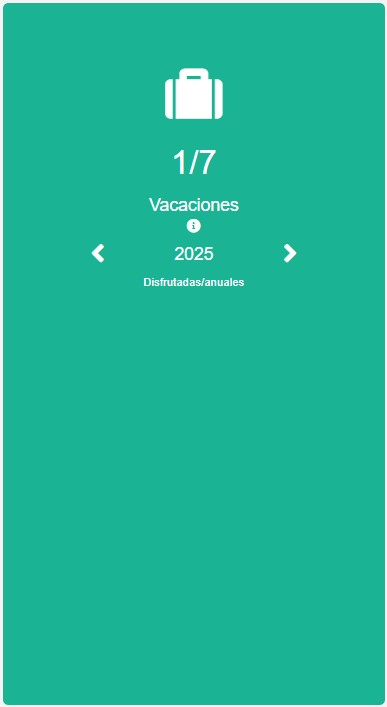 Muestra cuántos días de vacaciones han sido disfrutados y cuantos quedan disponibles en el año consultado. Visible para: Usuarios planificables.