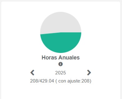 Muestra la cantidad de horas computadas del cuadrante , en comparación con las horas establecidas por contrato año e informadas en el perfil del trabajador logueado. Visible para: Usuarios planificables.
