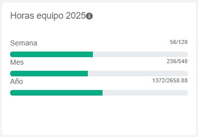 Muestra la suma de las horas computadas de todos los usuarios planificados en el cuadrante (semana, mes y año), comparadas con la suma de las horas contrato de todos los usuarios planificables, indicadas en el perfil de cada trabajador. Visible para: superusuarios, administradores totales, planificadores y validadores.