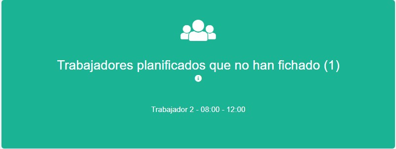 Informa de los trabajadores que, teniendo turno u horas planificadas en su cuadrante, han fichado el inicio de su jornada laboral en el control horario. Más información ver “Diario” y “Detalle” . Visible para: Administradores
