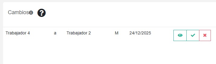 Este widget permite que los trabajadores vean los cambios que se les ha pedido desde la pantalla de inicio y aceptarlos o denegarlos.