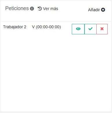 Permite ver qué peticiones están pendientes pendientes y además, crear nuevas peticiones desde la pantalla de inicio. Visible para: Superusuarios y administradores totales.