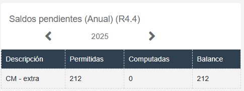 Este widget, muestra el saldo entre el número permitido de horas de un tipo de absentismo, que se puede planificar al trabajador, dependiendo del número total de horas planificadas de un tipo de turno en el mes consultado.