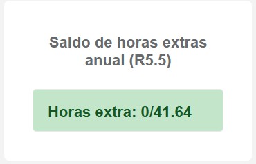 Este Widget está relacionado con la restricción 5.5 “Limitar las horas extras planificadas al año a las informadas en el perfil del trabajador”. Informa las horas extras planificadas que tiene el usuario en el cuadrante en el año actual y las horas extras máximas registrada en su perfil. Visible para: Usuarios planificables.