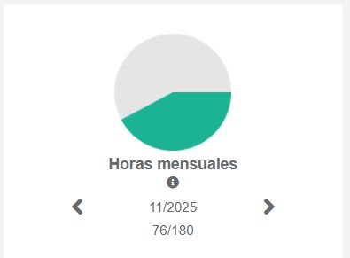 Este widget compara el cómputo de presencia con las horas computadas del mes. El cómputo de presencia es el estado del control de presencia diario + horas planificadas.