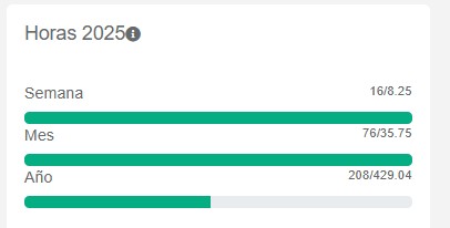 Muestra las horas computadas en cuadrante, a nivel semanal (semana actual), mensual (mes actual) y anual (año actual) del usuario logueado. Visible para: Usuarios planificables.