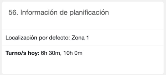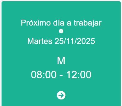 Muestra cuándo es tu próximo día con turno planificado, indicando tipo de turno y horario. Visible para: Trabajadores y Administradores planificables.