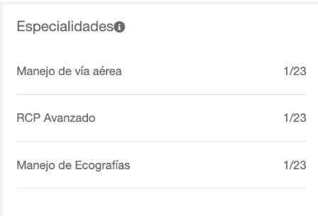 Muestra el listado de especialidades creadas en el equipo, indicando número total de trabajadores que tienen asignada cada una de ellas, comparándolo con el número total de trabajadores del equipo. Visible para: Administradores y el superusuario.