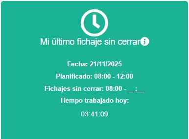 Muestra cuántos fichajes no se han cerrado en los turnos realizados con anterioridad. Visible para: Administradores.