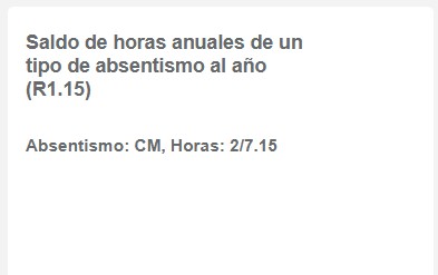 Este widget nos muestra el saldo de horas de absentismo planificados y las horas permitidas de este tipo de absentismos, según los valores e información documentada en la restricción R1.15