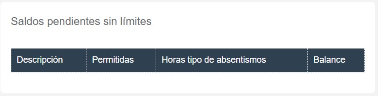 Balance: un balance positivo indica cuantas horas absentismos de este tipo aún se puede planificar, sin incumplir la restricción. Un balance negativo indica que han sido planificados más horas de este tipo de absentismo de los permitidos.