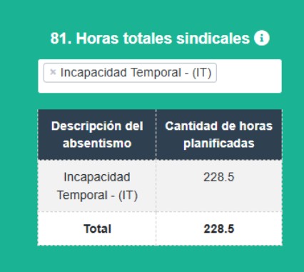 Total de absentismos: informa cuantas horas de absentismos totales y temporales, de este tipo, están planificadas en el cuadrante anual.